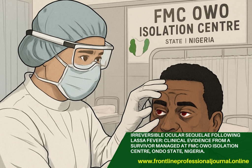 CITATION: Isaac Ihinmikaye, Olufemi Oladele Ayodeji, Adetumi Adetunji Subulade, Olalekan Ojo, Temitope Emmanuel Taiwo, Liasu Adeagbo Ahmed. (2025). Irreversible ocular sequelae following Lassa fever: clinical evidence from a survivor managed at Fmc Owo isolation Centre, Ondo State, Nigeria. Frontline Professionals Journal 2(11), 232 -241