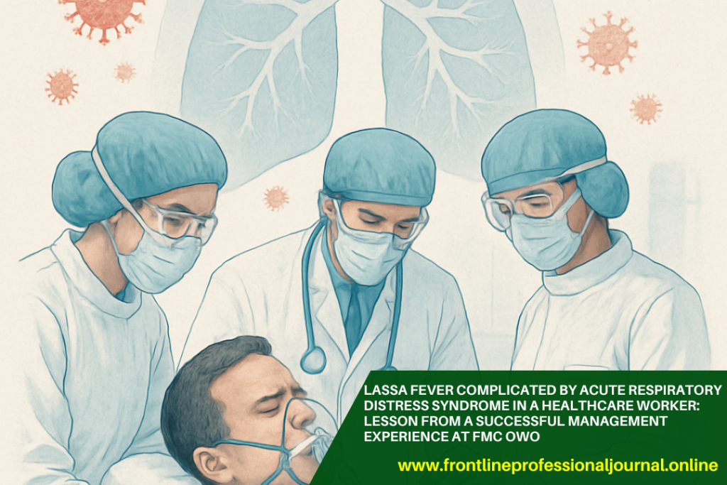 CITATION: Isaac Ihinmikaye, Olufemi Oladele Ayodeji, Esther Jackson Fioboah, Adetumi, Olayinka Olubukola Komolafe, Adetunji Subulade, Olalekan Ojo, and Liasu Adeagbo Ahmed (2025). Lassa fever complicated by acute respiratory distress syndrome in a healthcare worker: Lesson from a successful management experience at FMC Owo. Frontline Professionals Journal 2(11), 215-221